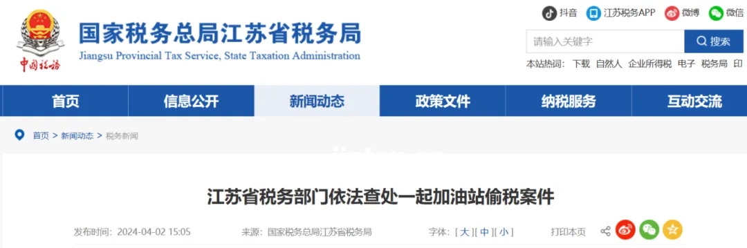 國家稅務總局江蘇省稅務局稽查局根據相關部門移送線索,指導國家稅務總局揚州市稅務局稽查局依法查處了高郵市某加油站偷稅案件。