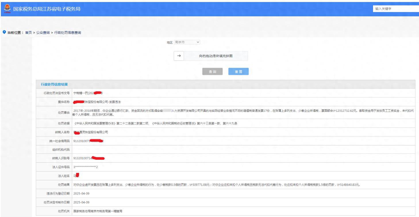 稅務局發布行政處罰決定書文號:寧稅稽一罰[2025]44號 的處罰事由顯示,2017年-2018年期間,該企業通過銀行匯款、資金回流的方式取得安徽***人力資源開發有限公司開具的與實際經營業務情況不符的增值稅普通發票17份,在賬簿上多列支出、少繳企業所得稅,票面額合計12312732.62元。套取資金用于發放員工工資獎金,未代扣代繳個人所得稅,且無法代扣代繳。